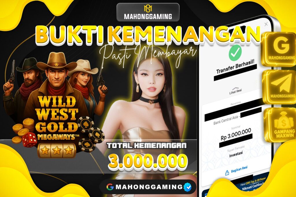 🏆 Bukti Kemenangan Member MAHONGGAMING – Wild West Gold Megaways Rp 3.000.000